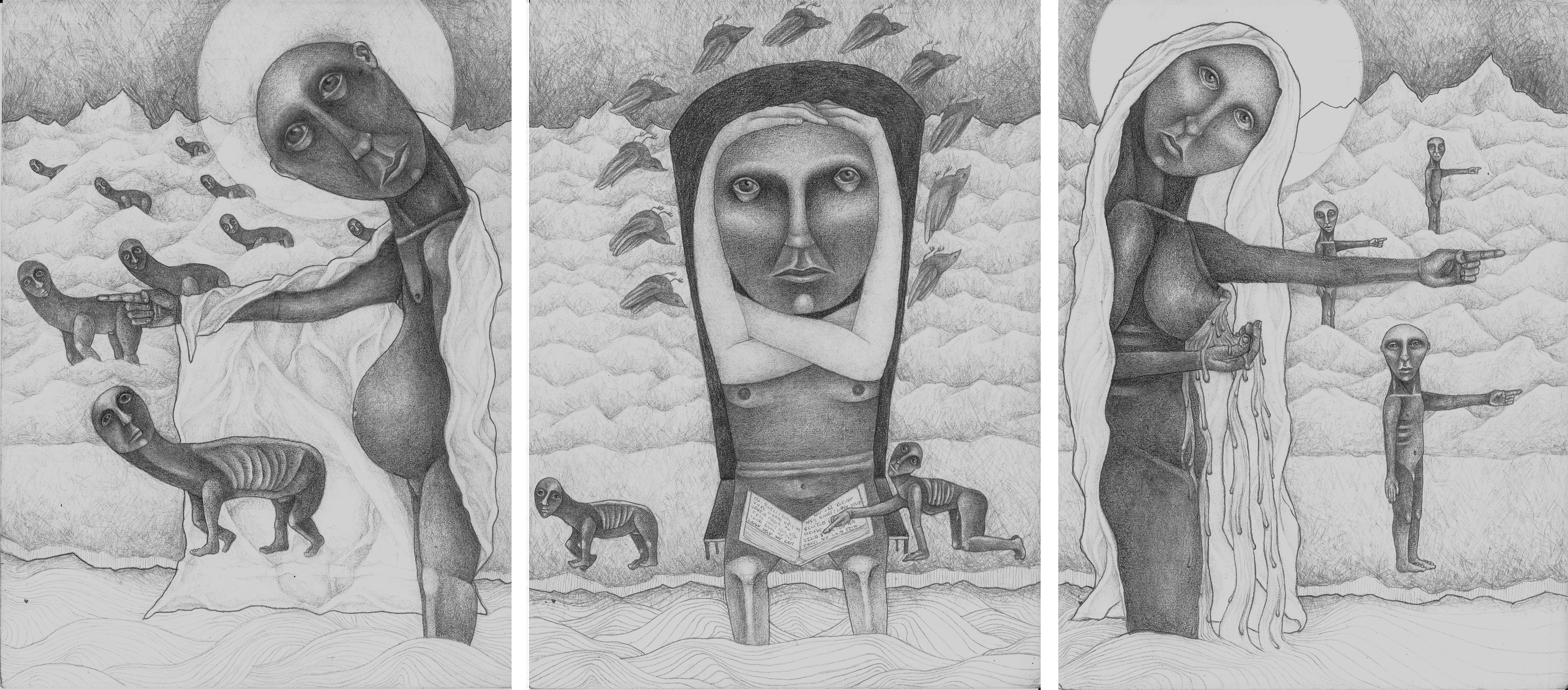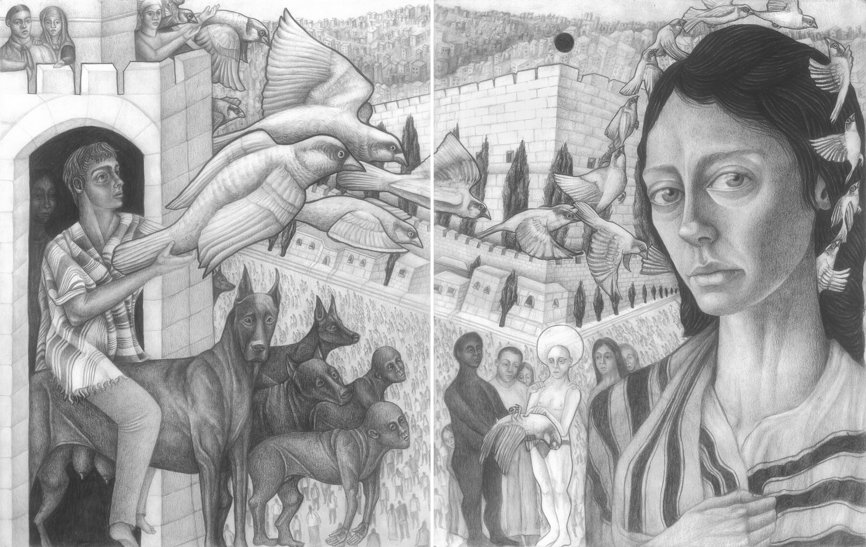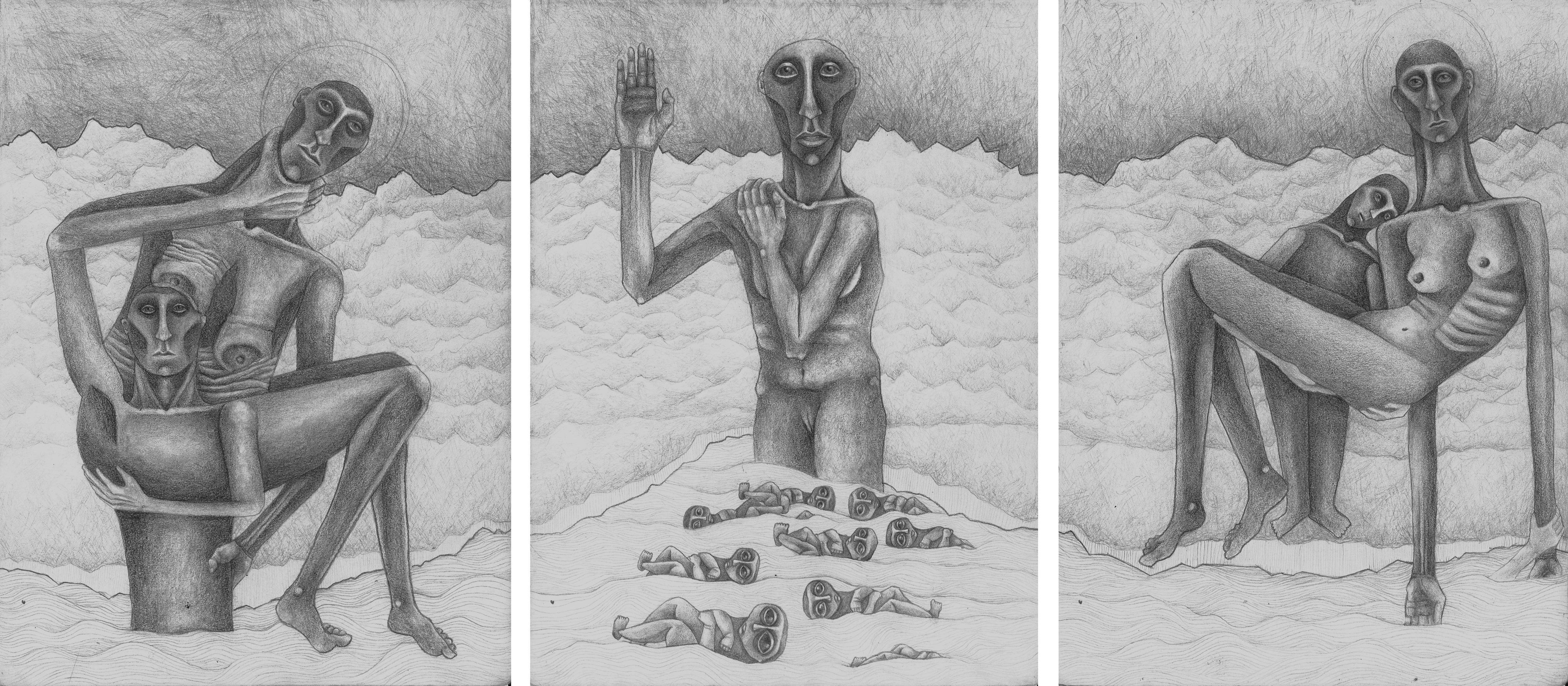 Pillar of salt / Farewell to the city’s beasts | Pencils on paper | 56X35 | 2024